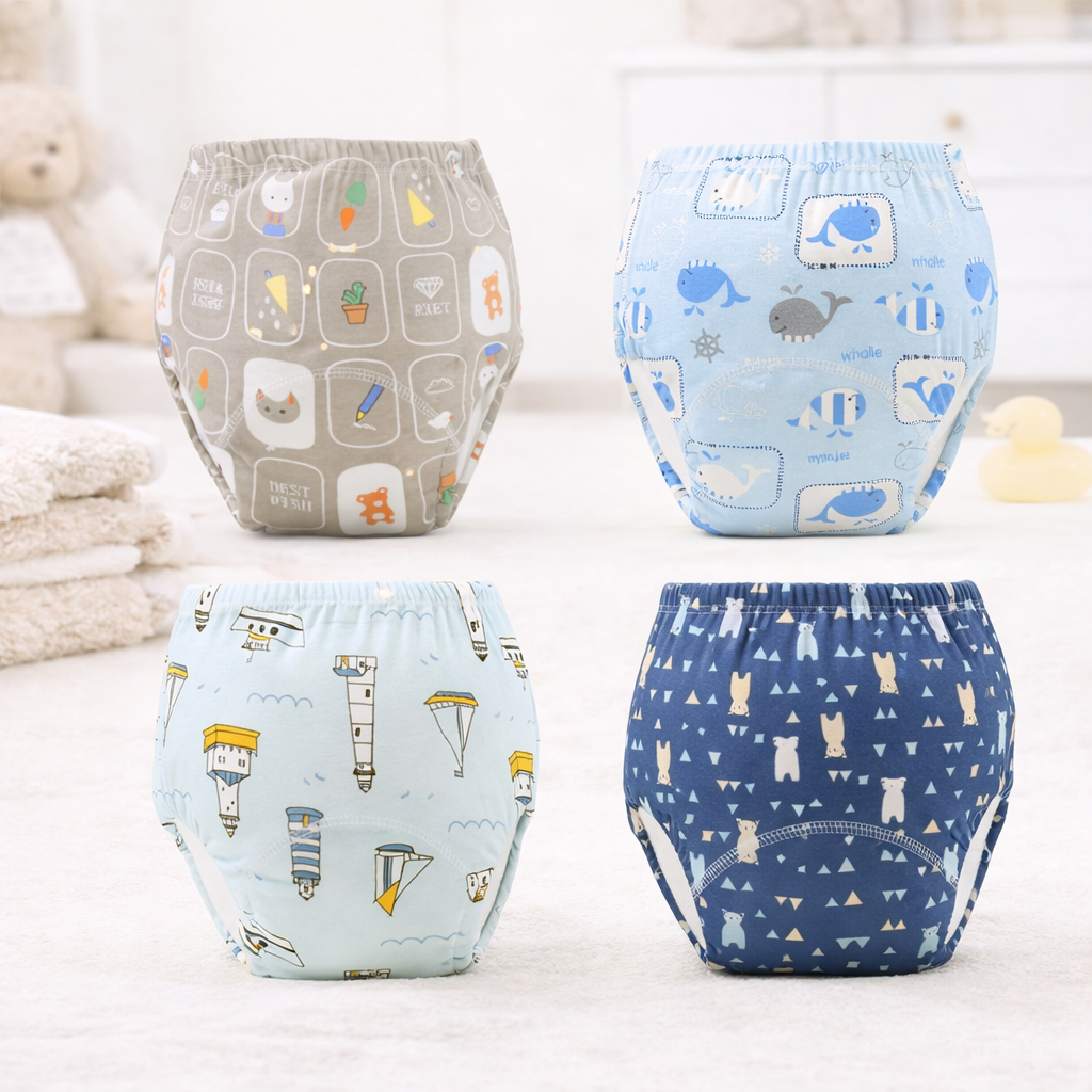 Possui a aparência e o tecido macio de uma roupa íntima, porém conta com forro interno central impermeável que absorve os escapes que são comuns nessa transição do desfralde.